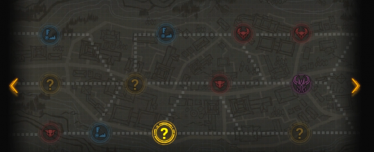 地牢游戏玩法类似于代号地牢。玩家可以选择前进路线,但在到达终点之前不能后退。红色区域为普通怪物,分为2个难度。通关后有几率掉落史诗装备;蓝色区域为管风琴室,玩家需要在这里玩小游戏通关,无需战斗;黄色区域是一个随机房间,里面有战斗、对话、BUFF装置;粉红色区域是boss怪物,房间通关后有大概率掉落史诗装备。这里建议玩家刷掉所有可能产生装备的地图,选择路线。